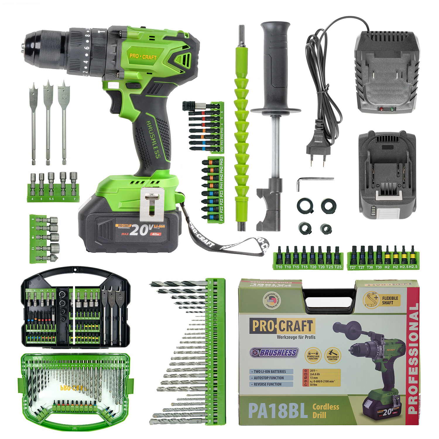 Procraft SPA18BL Akumulatorska udarna bušilica bez četkica s DBS-101 setom bitova