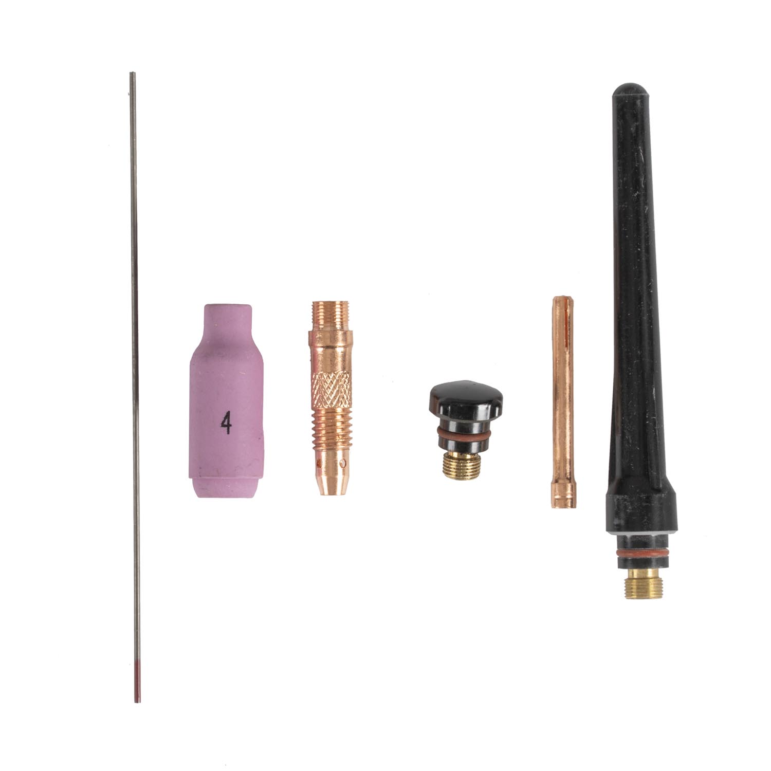 Plamenik podržava volframove elektrode promjera 0,5–2,4 mm, što omogućuje zavarivanje širokog raspona materijala, uključujući nehrđajući čelik, aluminij i druge legure. Duljina crijeva 4 metra osigurava dovoljan radni raspon i udobnost čak i pri radu u skučenim ili teško dostupnim prostorima.