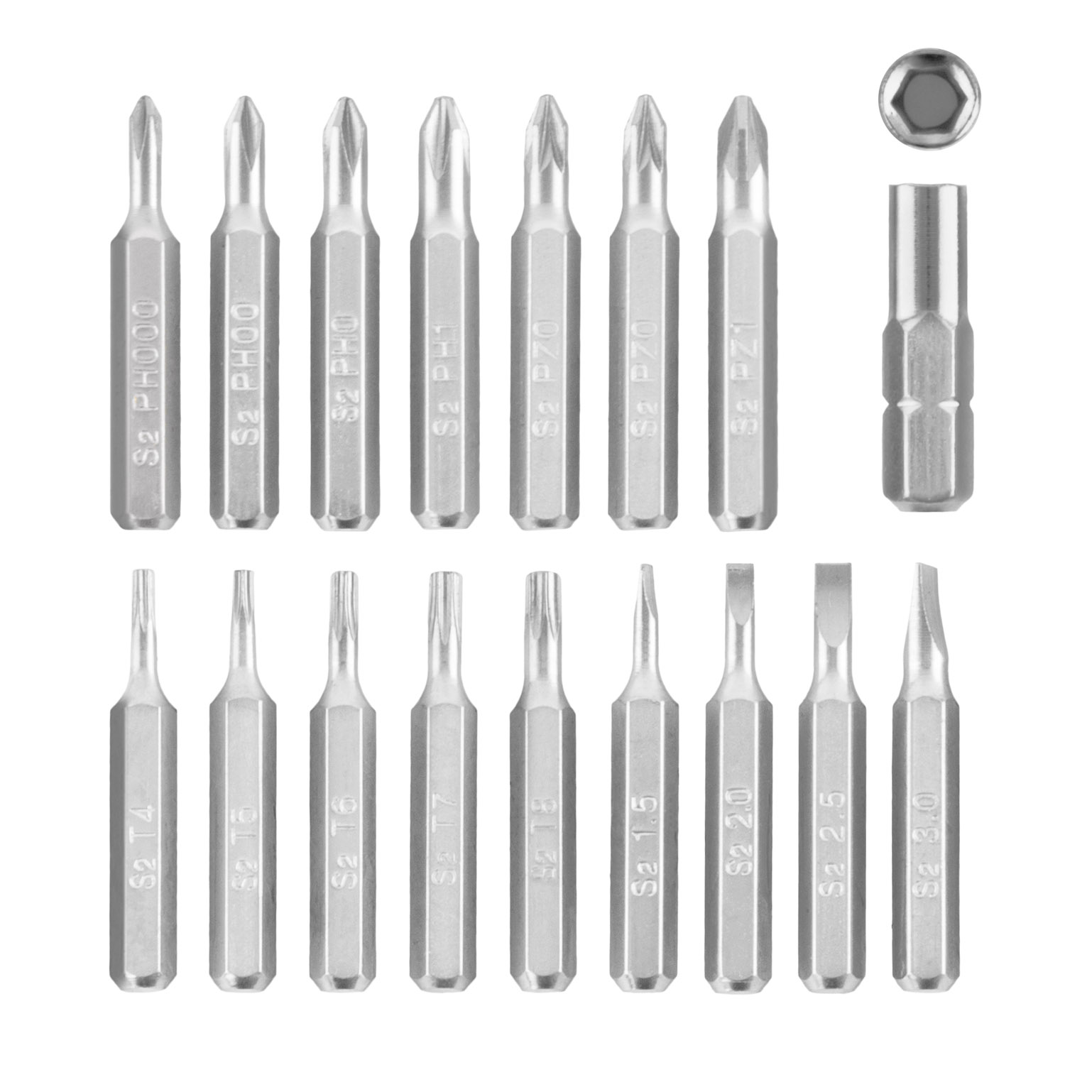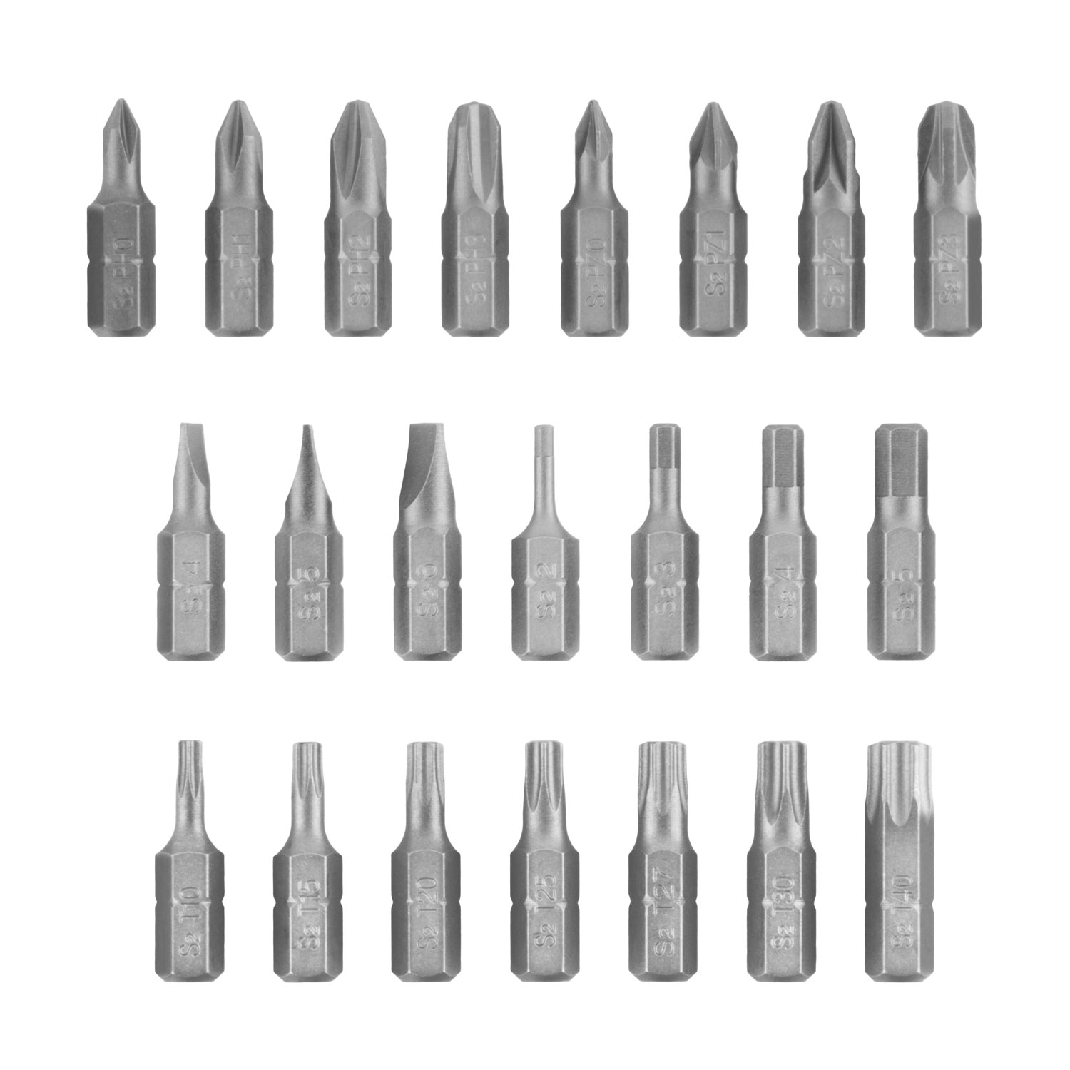23 komada bitova od 25 mm: Phillips: PH0, PH1, PH2, PH3