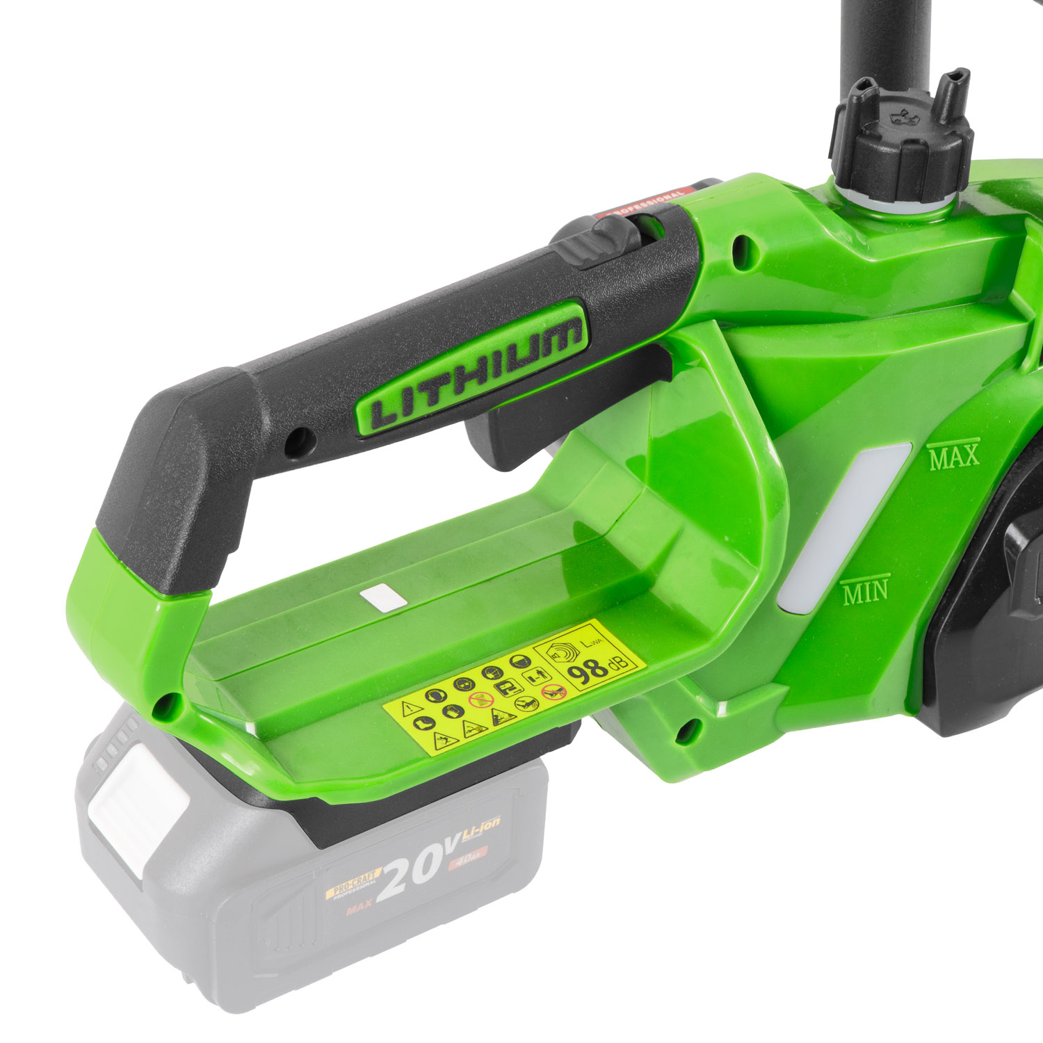 Akumulatorska motorna pila za jednu ruku koristan je alat za orezivanje drveća i grmlja u skučenim prostorima zahvaljujući svojim kompaktnim dimenzijama. Njen rad je tih u usporedbi s većim strojevima, a zahvaljujući motoru bez četkica, dovoljno je snažna. Opremljena je sigurnosnim štitnikom za lanac pile. Stroj se isporučuje s vodilicom i lancem pile u kartonu s ključem za montažu - bez baterije i punjača.