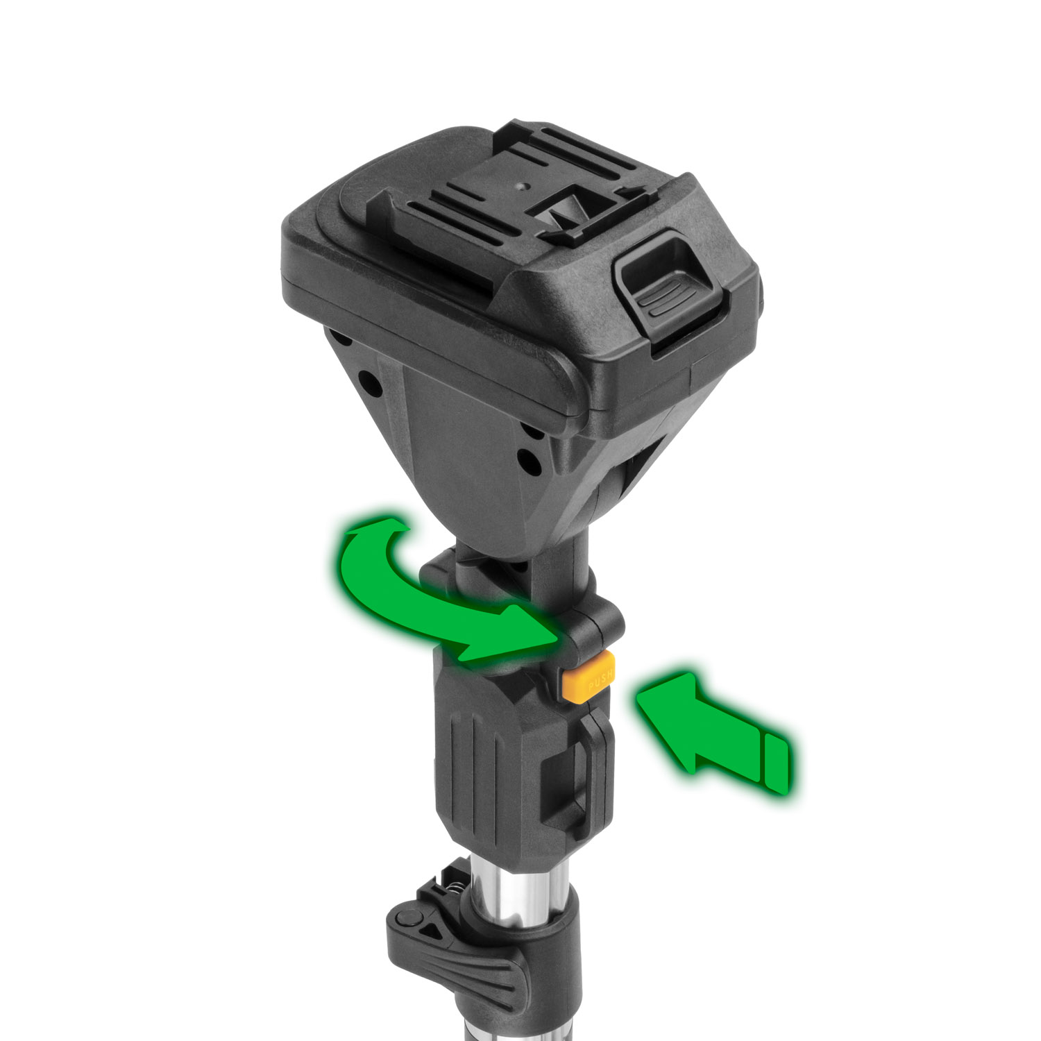 - Zahvaljujući rotirajućem dizajnu, nastavak se može lako prilagoditi željeni kut, što znatno olakšava rad na teško dostupnim mjestima. Pruža veću fleksibilnost, udobnost i sigurnost pri rezanju grana ili sječi u uskim prostorima gdje bi rukovanje konvencionalnom pilom bilo otežano.