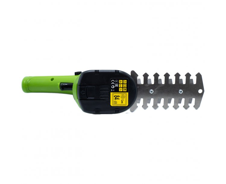 Akumulatorske škare za travu i grmlje. Alat je posebno prikladan za obrezivanje rubova travnjaka u blizini rubnika i drugih prepreka. S nastavkom za obrezivanje grmlja omogućuje detaljno oblikovanje zelenila zahvaljujući kompaktnim dimenzijama i maloj težini. Možete raditi do 30 minuta s punim punjenjem. Vrijeme punjenja cca. 240 minuta. Set uključuje nastavak za rezanje travnjaka, nastavak za obrezivanje i oblikovanje zelenila i punjač - pakirano u kartonskoj kutiji.