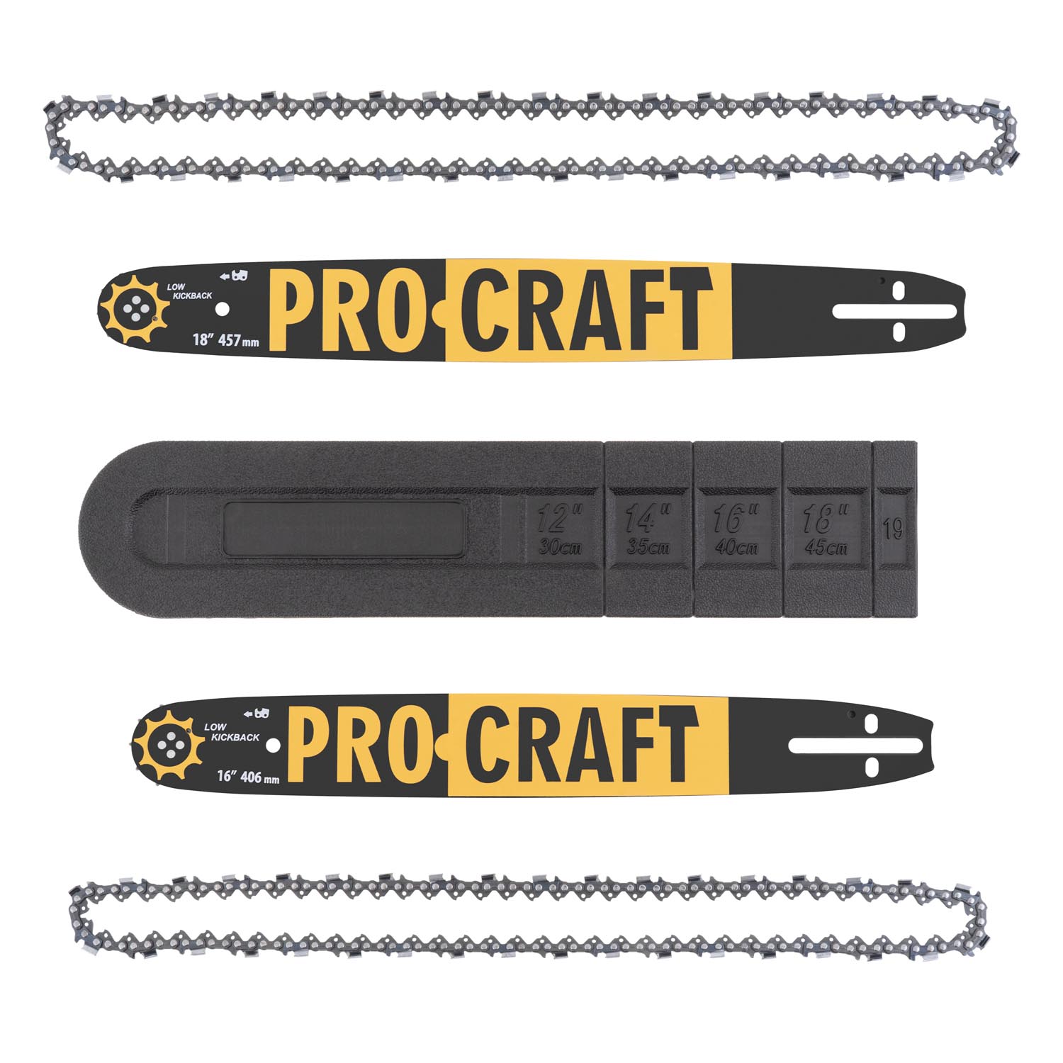 Dvije vodilice (406 mm i 457 mm) i dva lanca 0,325":Trenutna zamjena i dulji rad bez prekida.