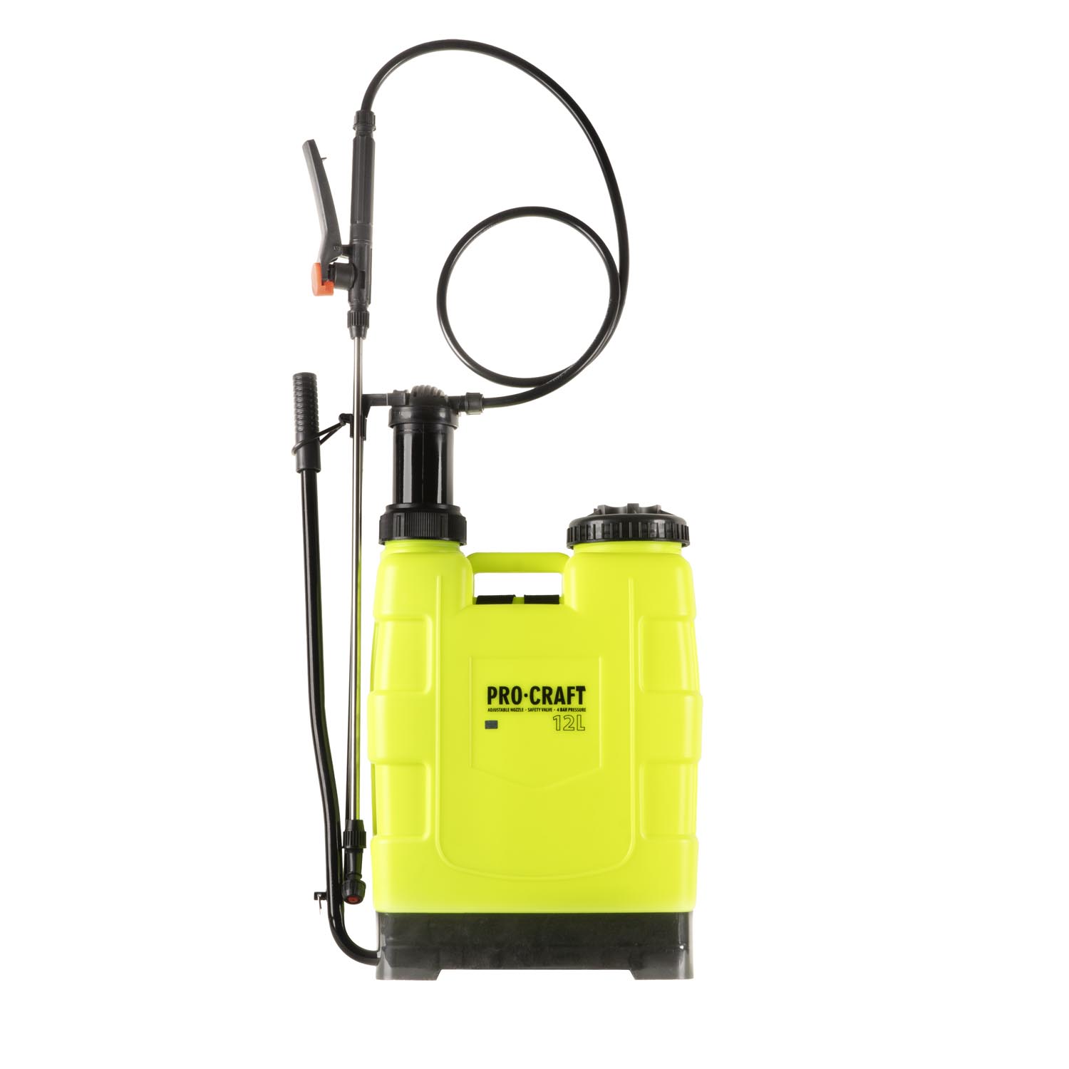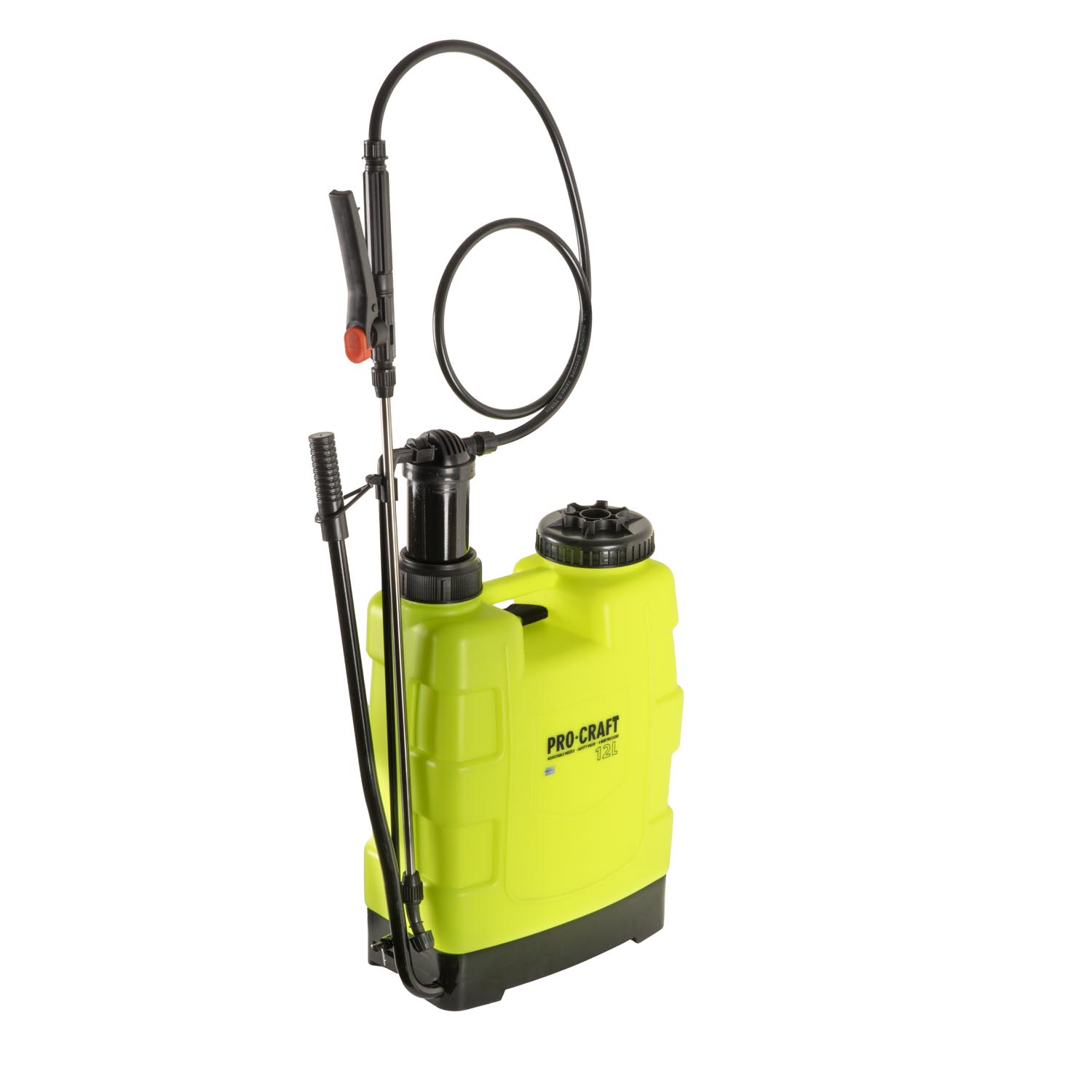 Ručna prskalica Procraft HS-12 Kapacitet spremnika 12 l Metalna cijev za raspršivanje. Raspršivač je izrađen od visokokvalitetnih materijala koji ne pucaju pod tlakom. Opremljen je gumenom brtvom koja je izdržljivija od standardne silikonske brtve. Paket uključuje rezervne zamjenjive mlaznice, praktičnu traku za leđa, brtvene prstenove i udoban pištolj za okidanje. Spremnik raspršivača je proziran, tako da tijekom rada možete vidjeti količinu tekućine.